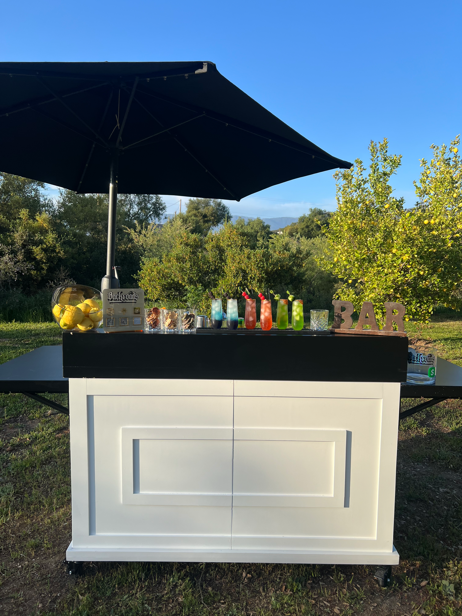 Backroads Mobile Bar does not carry a California State Liquor License to sell alcohol to clients or at events, it is the sole responsibility of the client to acquire “Purchase” any Alcohol (Beer, spirits, Liquors and Wines) that will be served during the event.